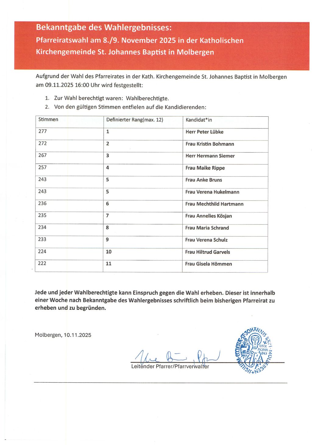 Herzlichen Glückwunsch dem neuen Pfarreirat 2025-29.