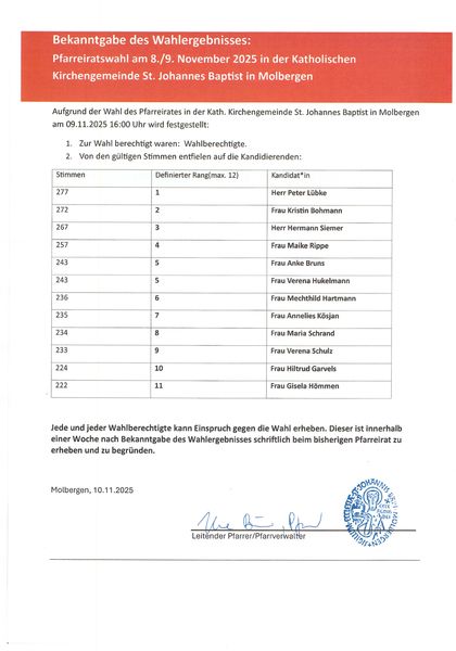 Am 8. und 9. November 2025 wurde in allen Gemeinden unseres Bistums ein neuer Pfarreirat gewählt. Auch bei uns.